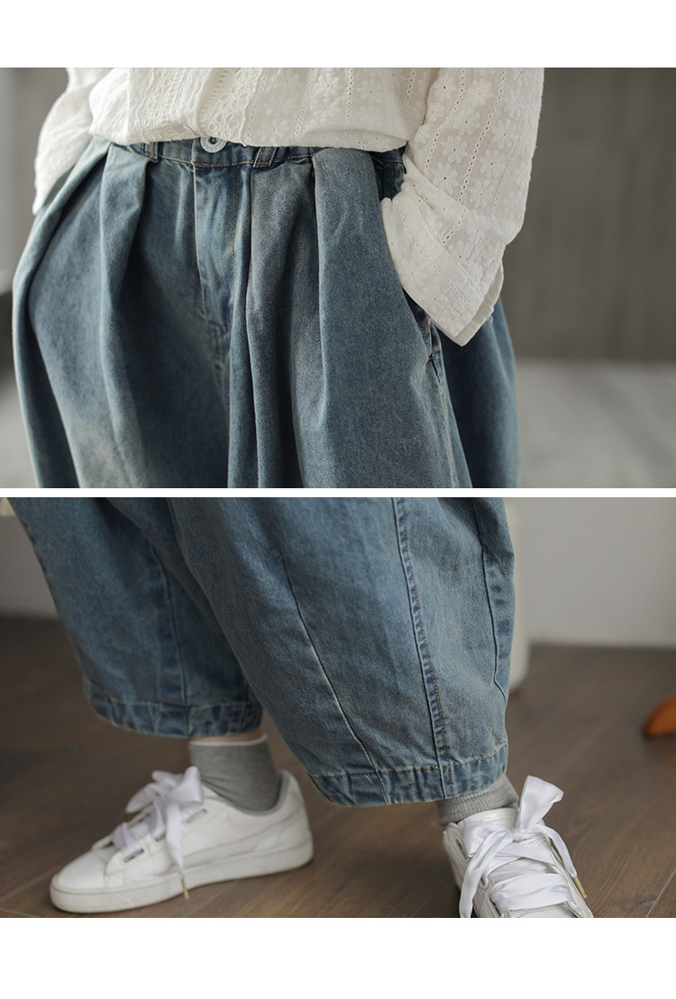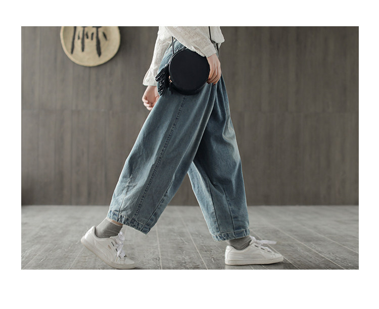 Женские брюки с широкими штанинами, джинсовые брюки с карманами синего цвета, винтажная женская одежда, свободные складные джинсы на пуговицах, модель LJ691, осень 2019