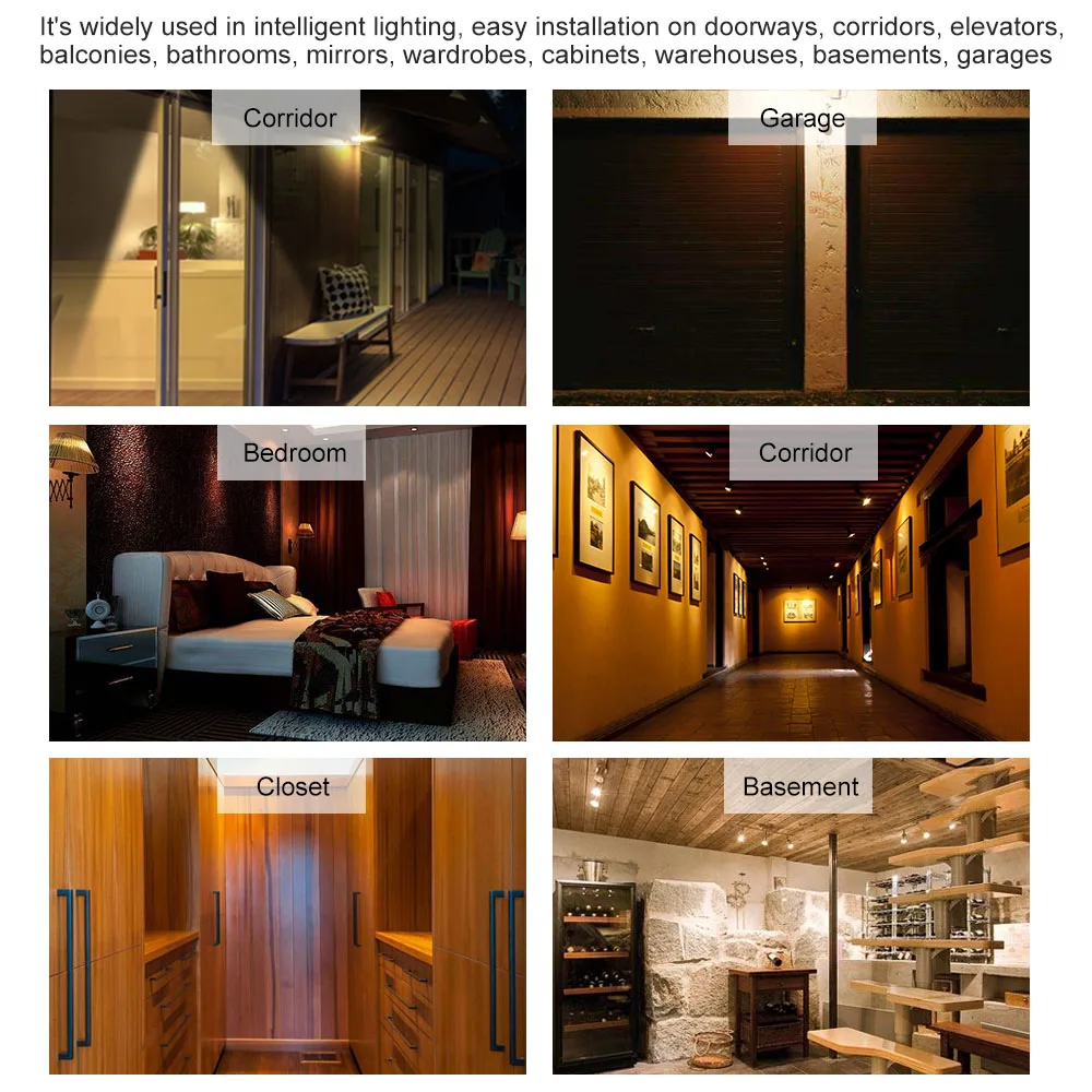 * Широкое применение: он широко используется в интеллектуальном освещении, легкой установке на дверных проемах, коридорах, лифтах, балконах, ванных комнатах, зеркалах, шкафах, шкафах, складах, подвалах, гаражах и т. д.