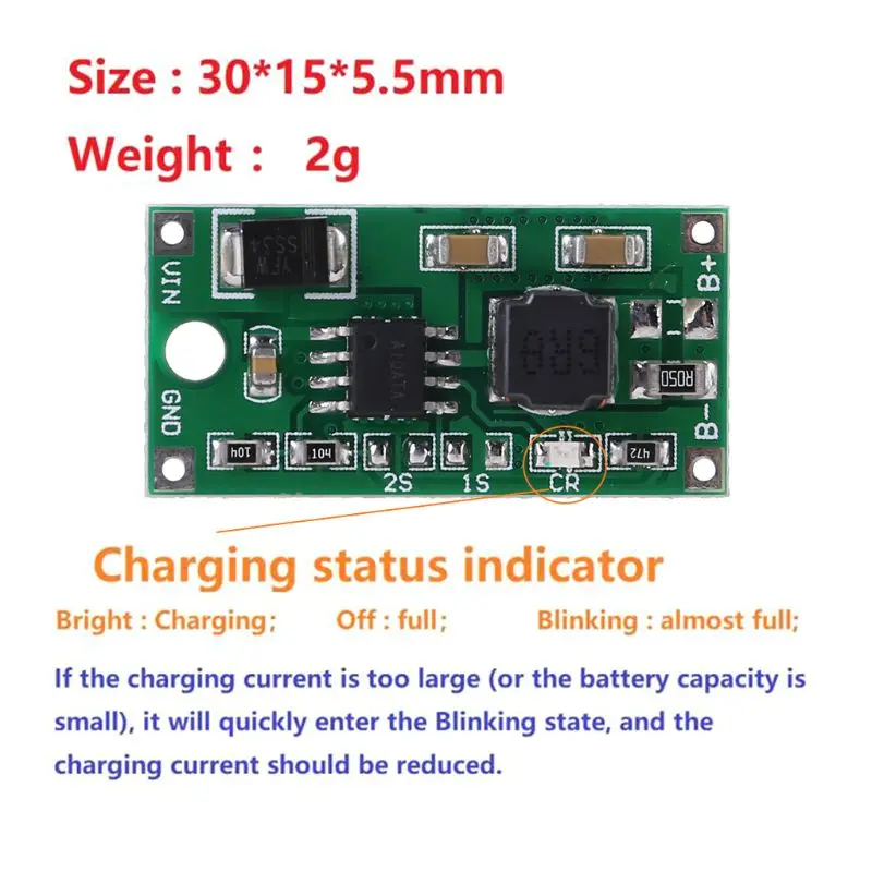 Яркий: Зарядка выключена: полная мигание: почти полная; Если зарядный ток слишком большой (или емкость аккумулятора мала), он быстро войдет в мигающее состояние, И ток зарядки должен быть уменьшен.