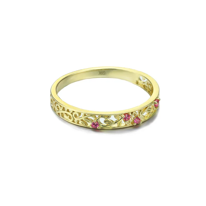 Элегантные корундовые кольца 9K из чистого настоящего желтого золота с цветочным узором для женщин и девочек, оригинальные однотонные кольца с драгоценными камнями, Изящные Ювелирные изделия, подарок