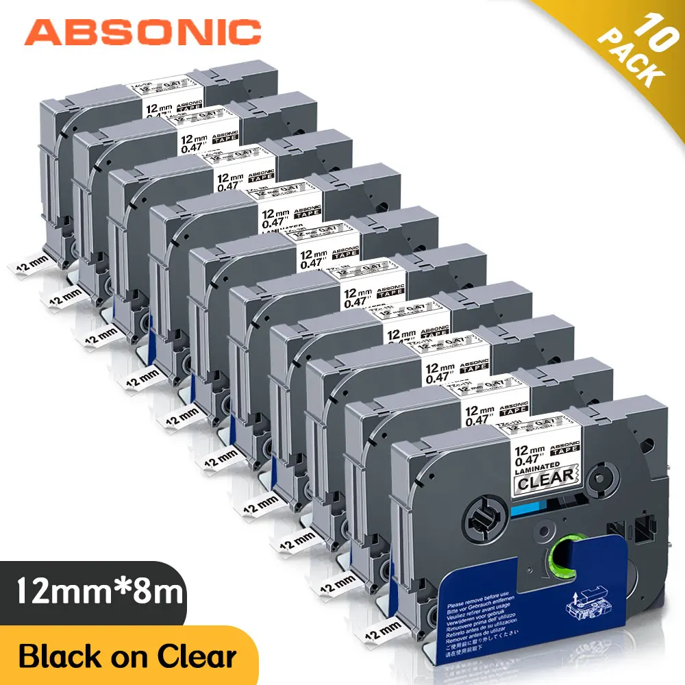 Absoonic 10 шт. TZe-131 TZ-131 Кассетная лента ламинированная лента для Brother P-touch PT-D210 PT-H110 производитель этикеток черный на прозрачной 12 мм