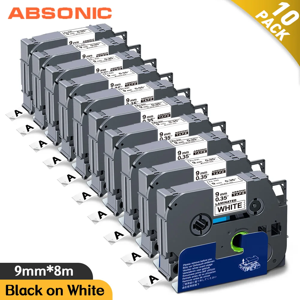 Absonic 10PK 9 мм этикетка 221 для Brother 221 лента черный на белом кассетном картридже совместимый для Brother Label Maker PT-H110 PT-1000