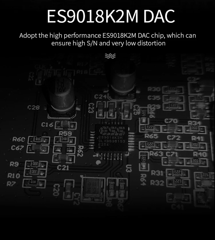 -Bluetooth 5,0, aptx Принимает bluetooth-чип QCC3008, изготовленный компанией Qualcomm, поддерживает Bluetooth 5,0, что обеспечивает стабильную передачу данных. -Поддержка ПК USB DAC Может поддерживать ПК USB DAC и может использоваться сразу же после его подключения. -Чип цифрового преобразования CS8406 Используйте высокопроизводительный чип цифрового преобразования CS8406, преобразуйте сигнал Bluetooth в высококачественное оптическое волокно/коаксиальный сигнал. -ES9018K2M DAC Используйте высокопроизводительный чип DAC ES9018K2M, который обеспечивает высокое искажение S/N и очень низкое искажение.