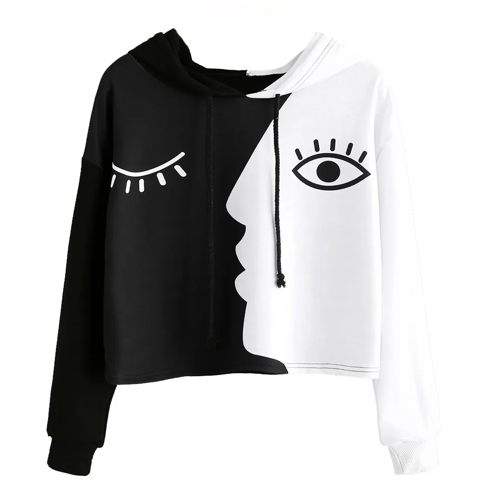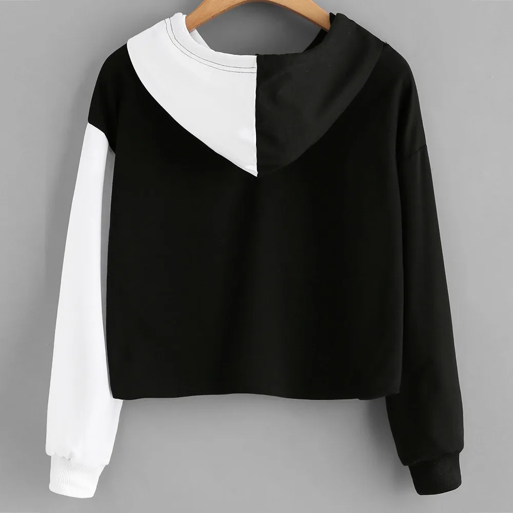 Женская толстовка с капюшоном и длинным рукавом, Лоскутная Блузка, пуловер, топы