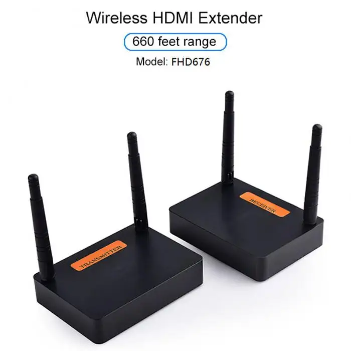 Высокая производительность и потоковая передача full HD.Беспроводной HDMI удлинитель FHD676 обеспечивает full HD аудио и видео при 1080p 60 Гц для четких, четких, четких изображений. Поддерживает инфракрасное расширение. На стороне удаленного телевизора вы можете использовать пульт дистанционного управления для управления приставной коробкой отправителя, такой как воспроизведение, пауза или выбор меню плеера.