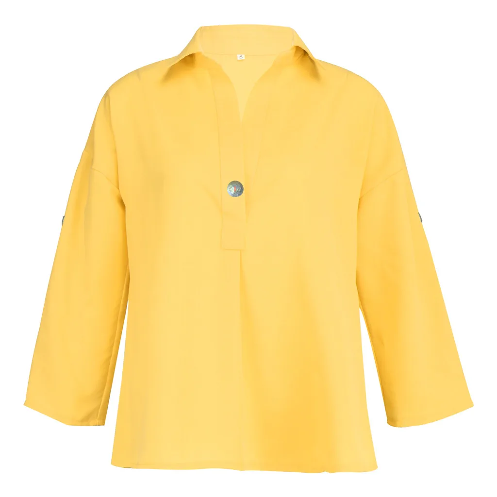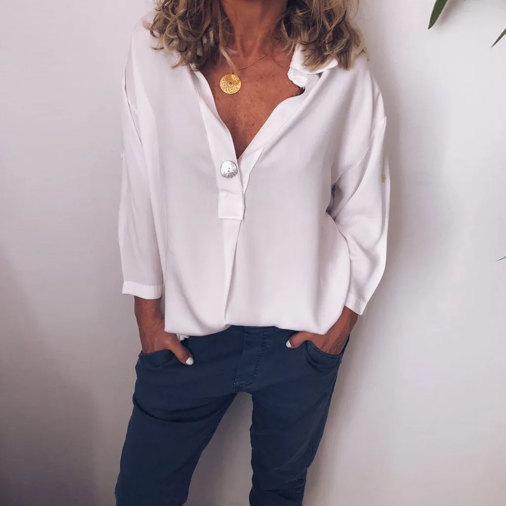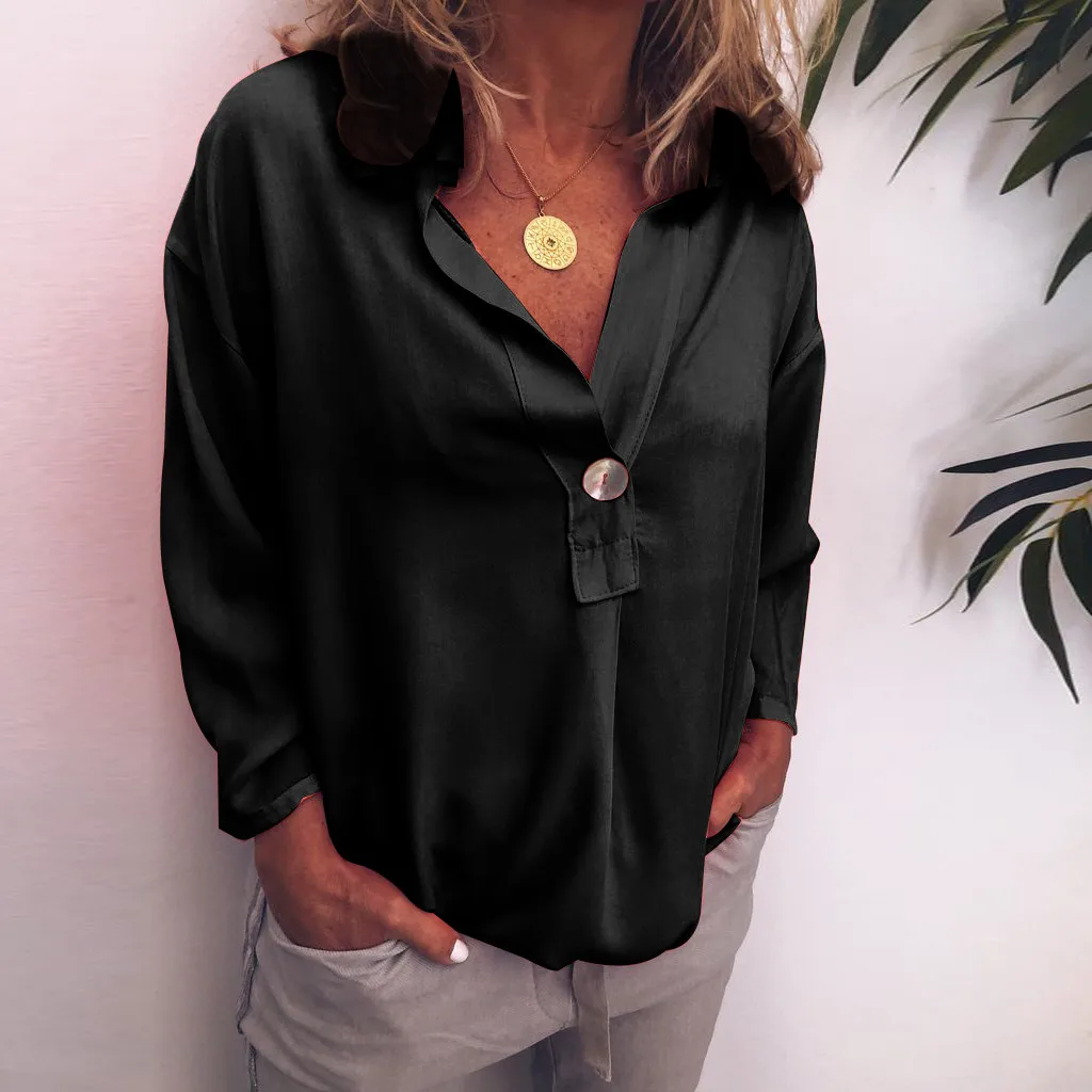 Женская модная Свободная Повседневная Блузка с отложным воротником и v-образным вырезом на пуговицах