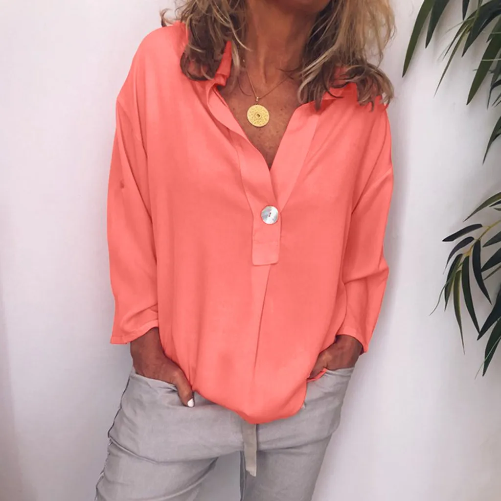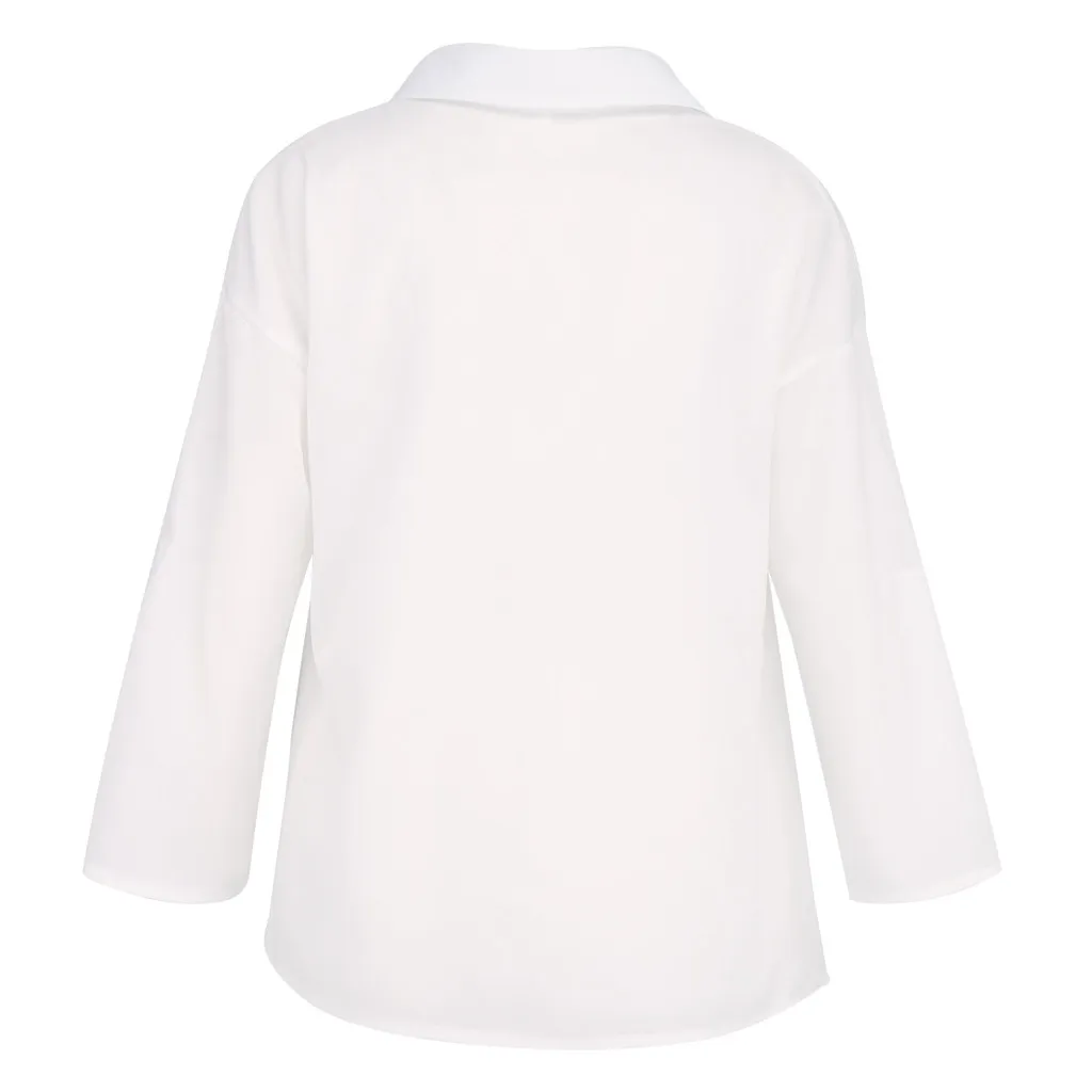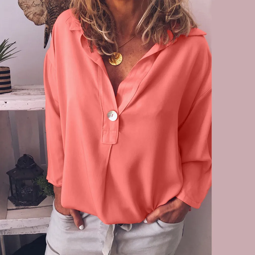 Женская модная Свободная Повседневная Блузка с отложным воротником и v-образным вырезом на пуговицах