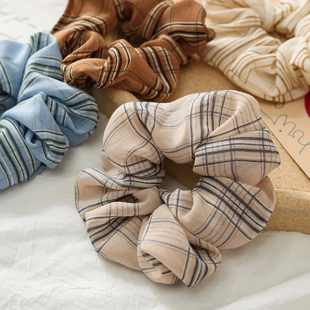 Винтажные Цветочные полосатые мягкие шифоновые резинки для волос резинка для хвоста кольцо для волос
