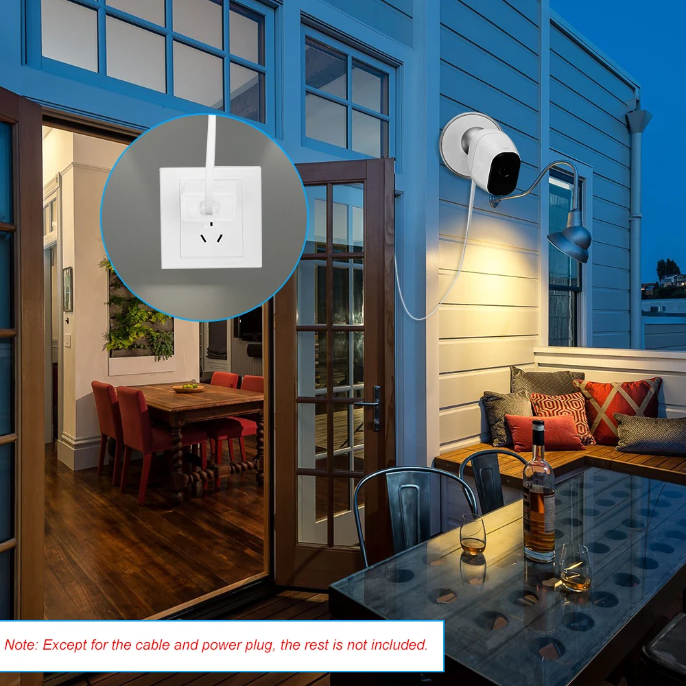 * Водонепроницаемый Дизайн: кабель для Arlo Pro оснащен косой конструкцией и водонепроницаемым силиконовым кольцом, который хорошо защищает каплю дождя от проникновения в отверстие для зарядки.