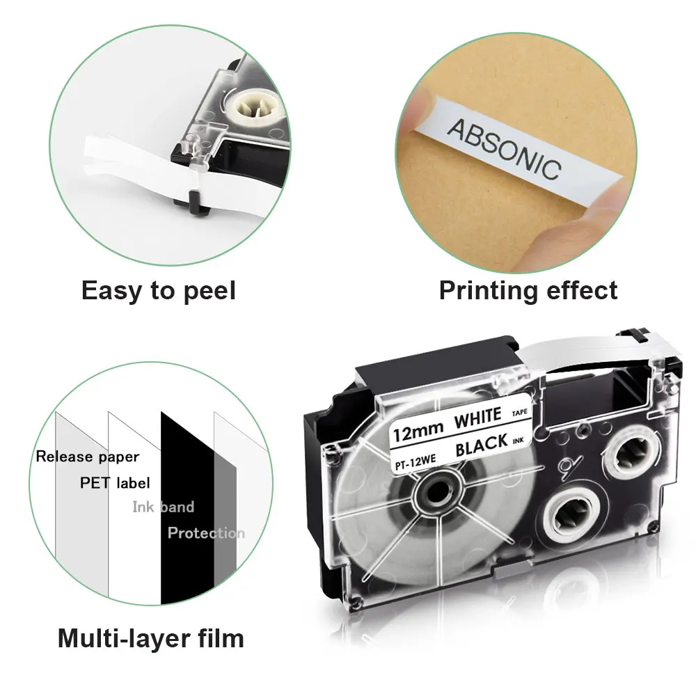 Absoonic 6 шт. 12 мм этикетка для Casio лента XR-12WE черный на белом картридже тег принтер лента совместима с Casio KL60 KL100 KL120 KL750 этикетка