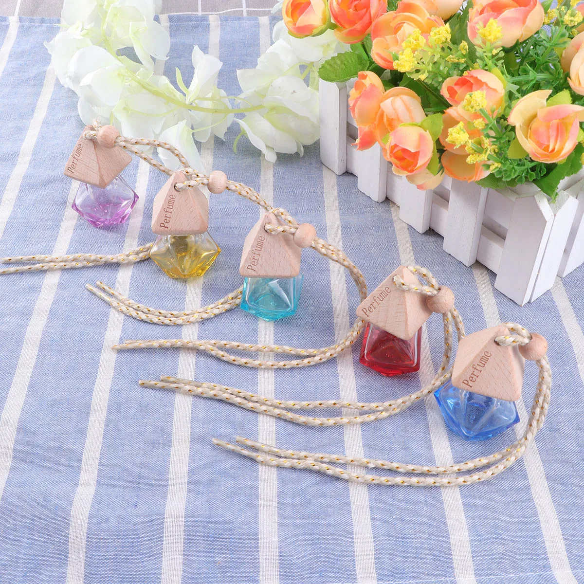 Эта мини-геометрическая бутылка изготовлена из стекла и запечатана деревянной крышкой. Крепится с крепким шнурком для легкой подвешивания, его можно разместить в автомобиле или дома. Полый шарик, который может свободно перемещаться, помогает регулировать положение бутылки для лучшего расположения и украшения.