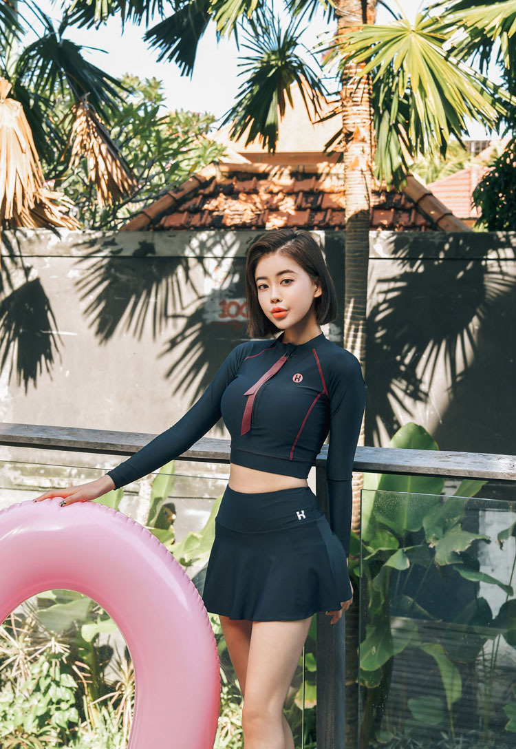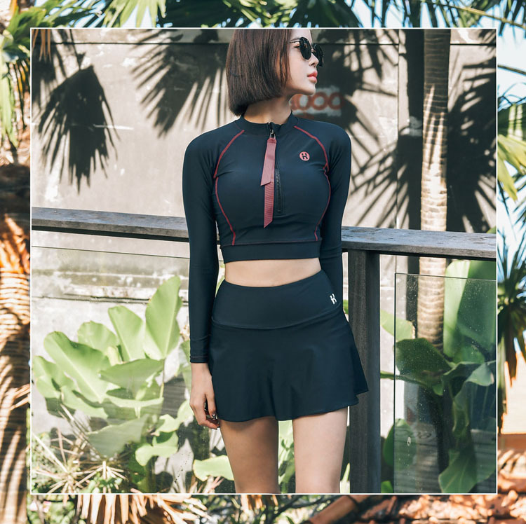 Женский комплект из двух предметов Рашгард/купальник с длинными рукавами