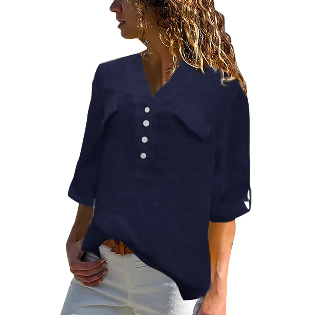 Женская винтажная Повседневная футболка с коротким рукавом и v-образным вырезом, большие размеры