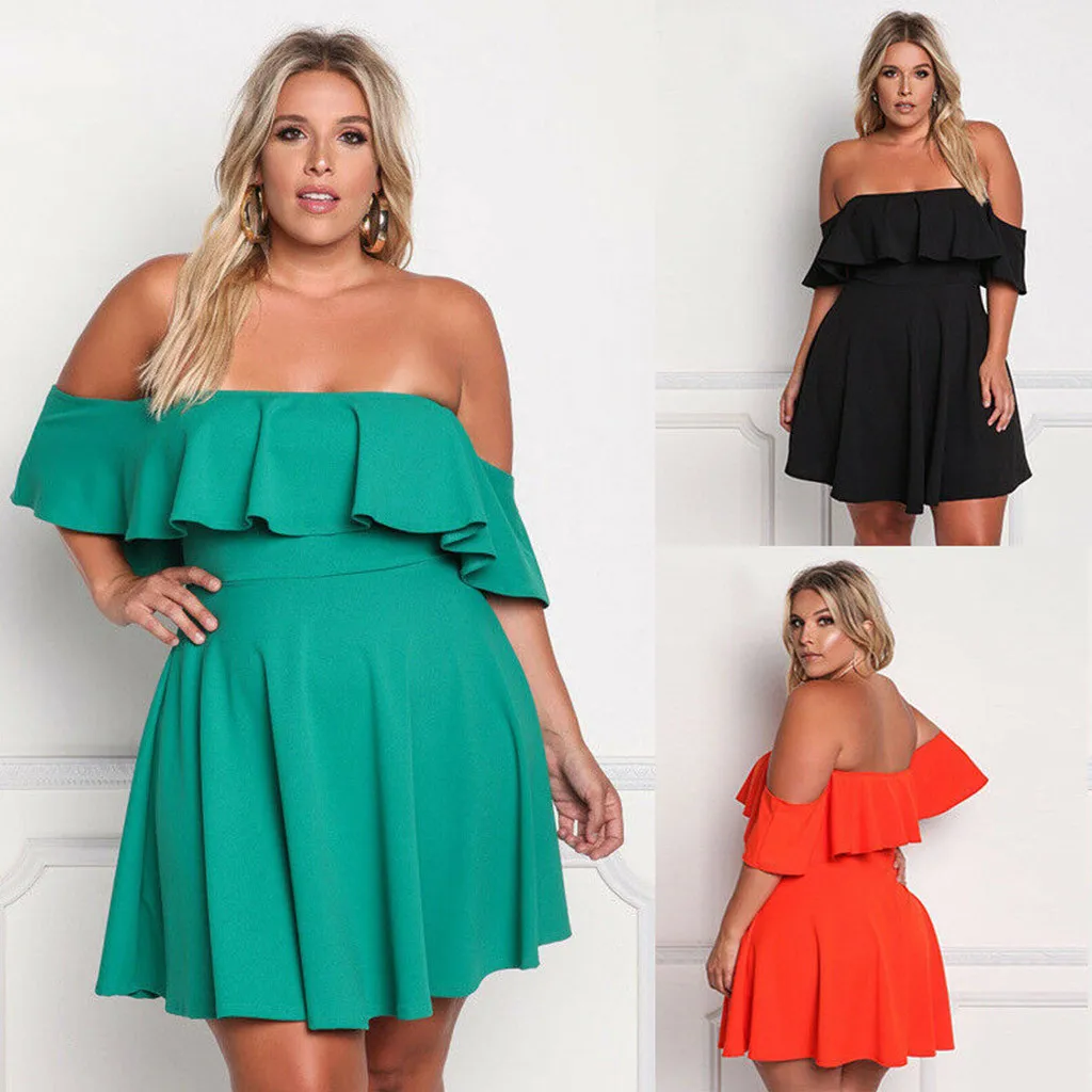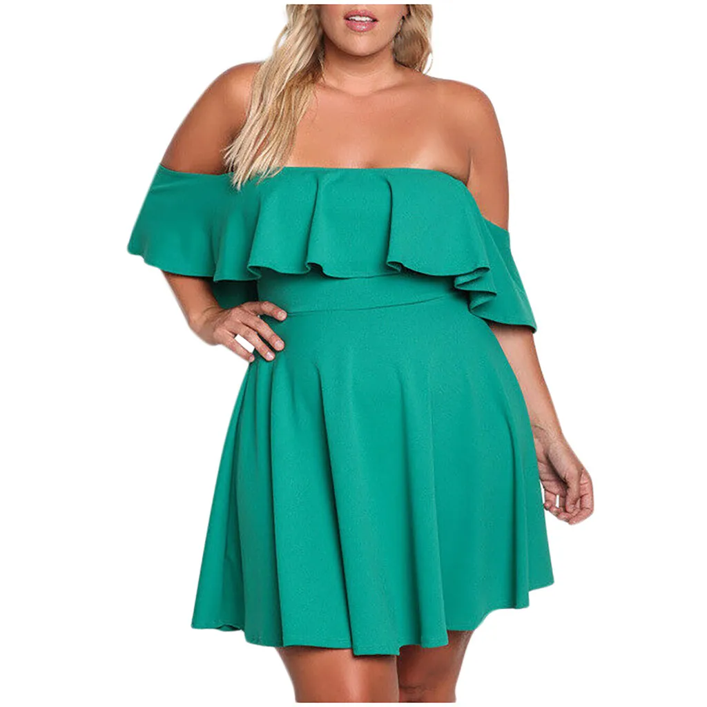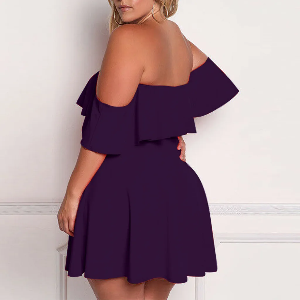 1. Особенности: женское платье размера плюс, с открытыми плечами, однотонное Клубное платье, плиссированные рукава, вечерние мини-платья.