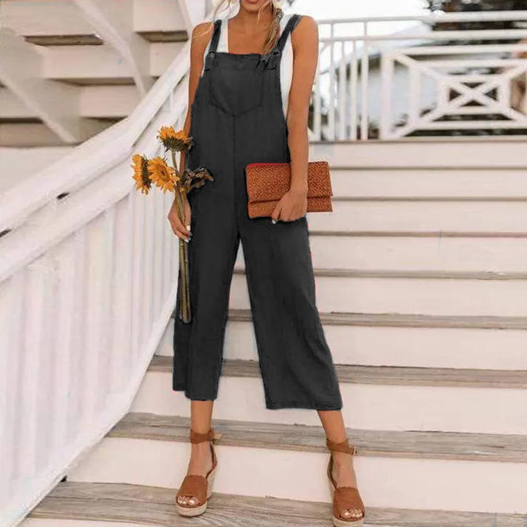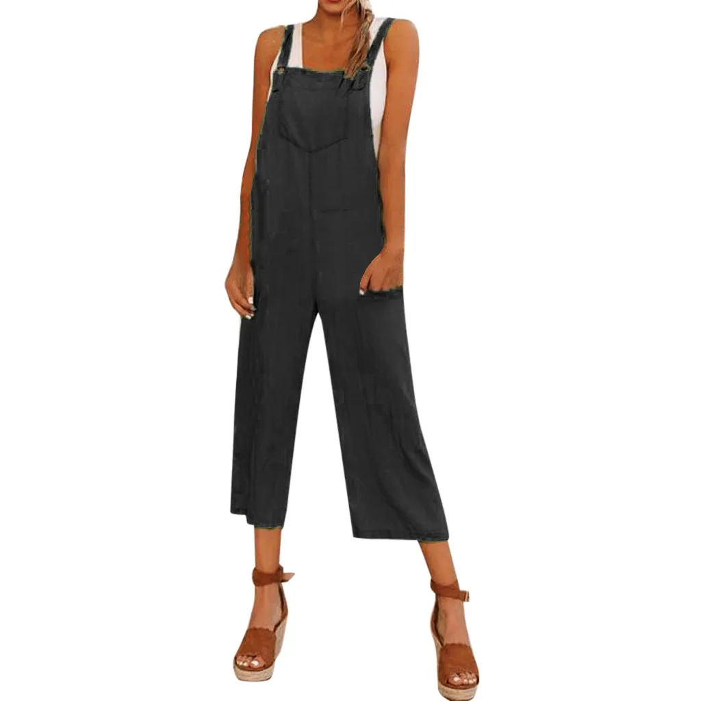 Женский свободный хлопковый льняной комбинезон без рукавов, вечерние комбинезоны