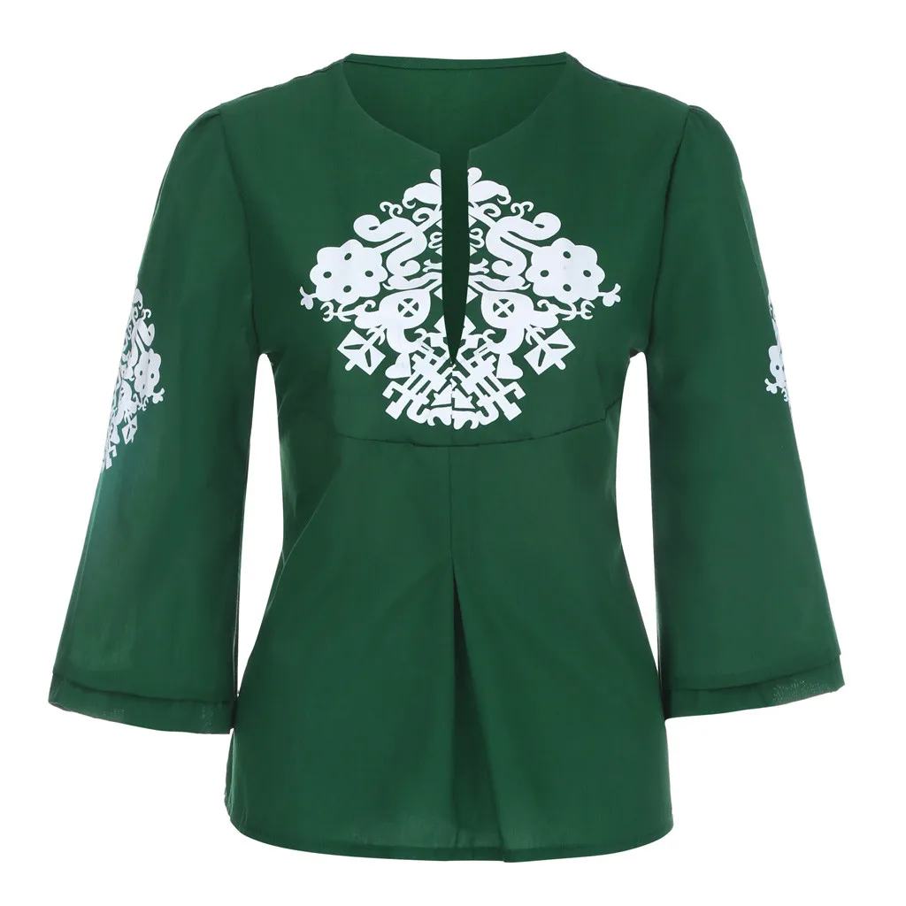 Модная женская блузка с v-образным вырезом размера плюс с принтом и коротким рукавом