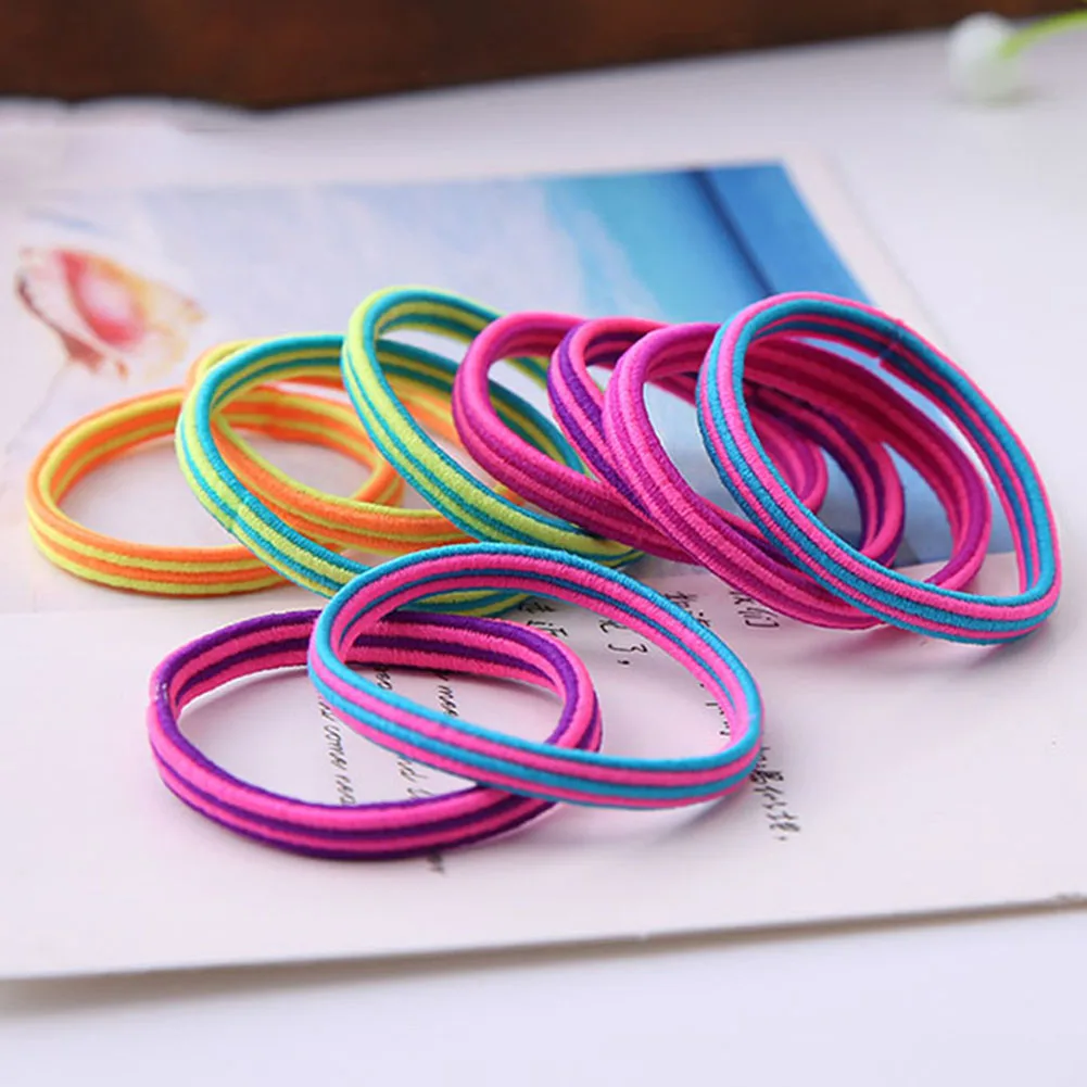 10 шт Цвет Красочные эластичные волосы группы детей волосы веревка аксессуары для волос случайный цвет