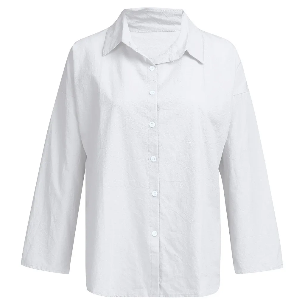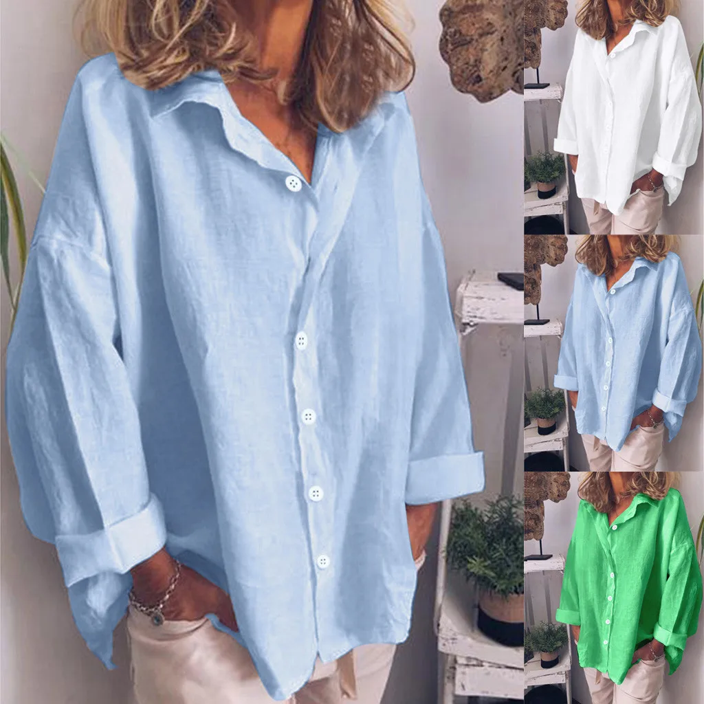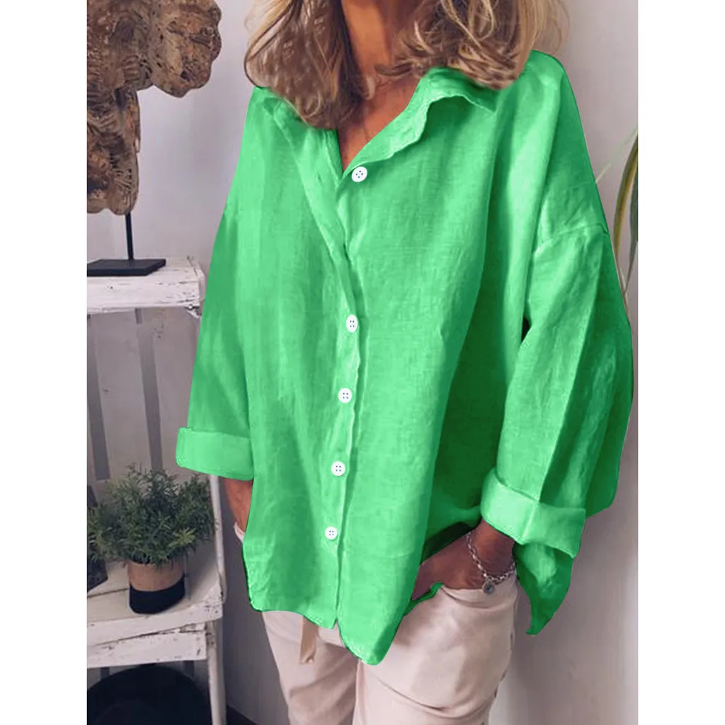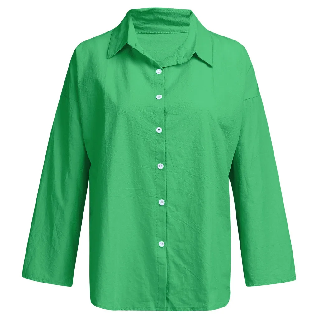 Женская Повседневная однотонная Свободная рубашка с отложным воротником с длинным рукавом, тонкие солнцезащитные Топы