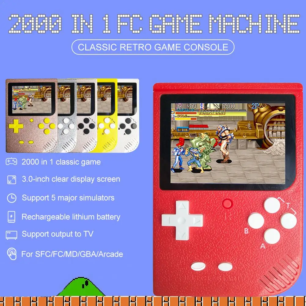2000 в 1 ретро мини портативная игровая консоль с цветным ЖК-экраном, детский цветной игровой плеер SUP встроенный 5 большой симулятор для GBA Arcade FC