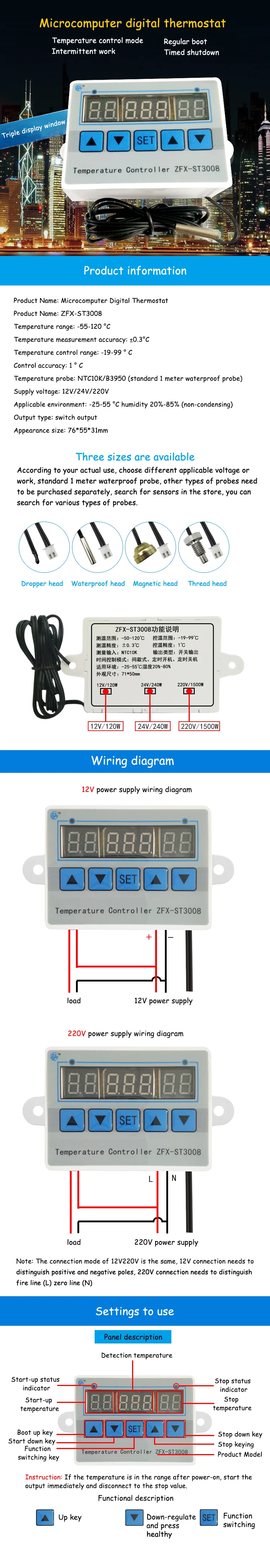 ZFX-ST3008 многофункциональный контроллер температуры с тремя дисплеями
