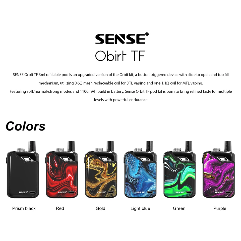 Оригинальный Sense Orbit TF Комплект Pod система стартер Vape 1100 мАч батарея 3 мл многоразовый Pod 0.6ohm сетка катушка 1.1ohm Ka1 катушка комплект