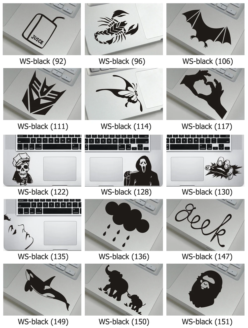 Особенности: 1. Ультратонкий; 2. Легко наносится и снимается, долговечен и никогда не выцветает; 3. Защита от пыли, водонепроницаемость, украшение; 4. Множество моделей на выбор; 5. Изображение показывает яркий визуальный эффект, как красивая татуировка на вашем ноутбуке; 6. Посылка включает в себя: 1 частичный стикер 1 шт.; 1 руководство по эксплуатации 1 шт. Пожалуйста, оставьте номер узора ниже заказа, если вам нужны следующие узоры.