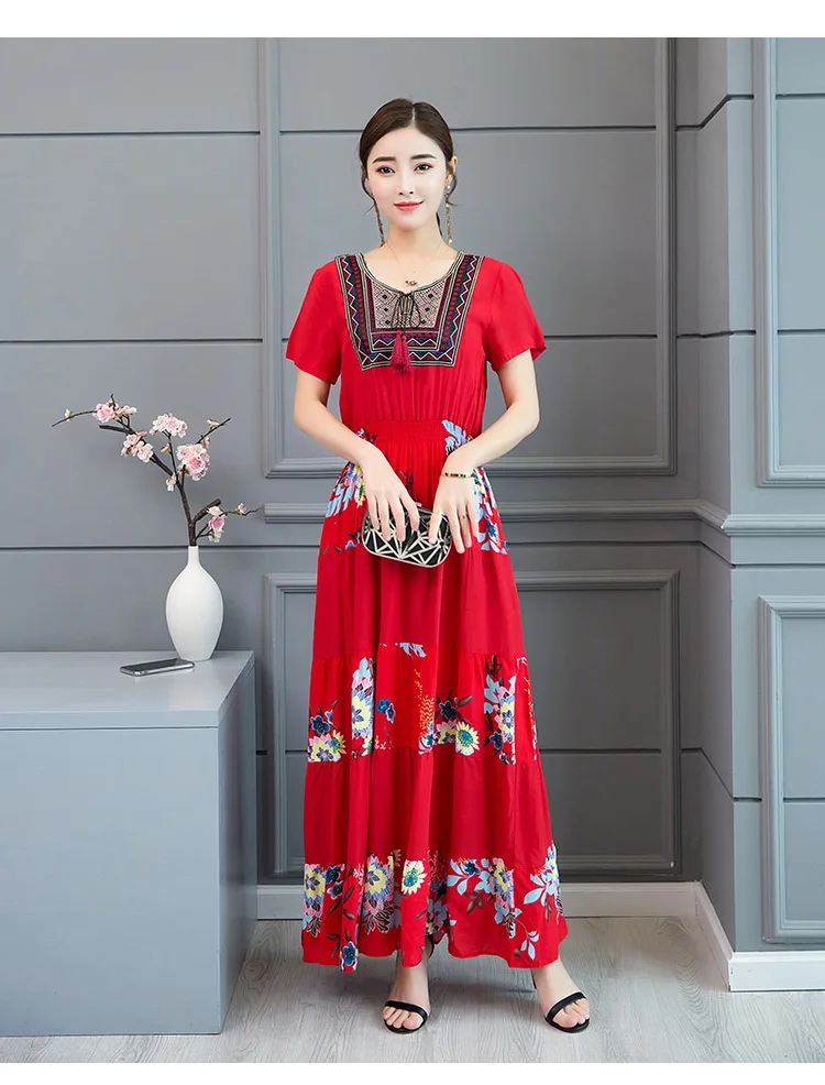 Женское платье-трапеция с коротким рукавом, хлопковое льняное платье макси с круглым вырезом, модель DV414 на лето, 2019