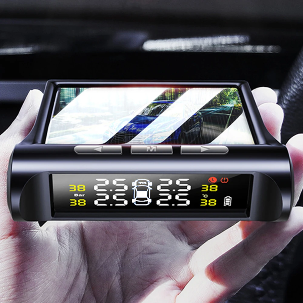 Автомобильная система контроля давления в шинах TPMS, с солнечной зарядкой, HD цифровой ЖК-дисплей, автосигнализация, беспроводные с 4 внешними датчиками TPMS