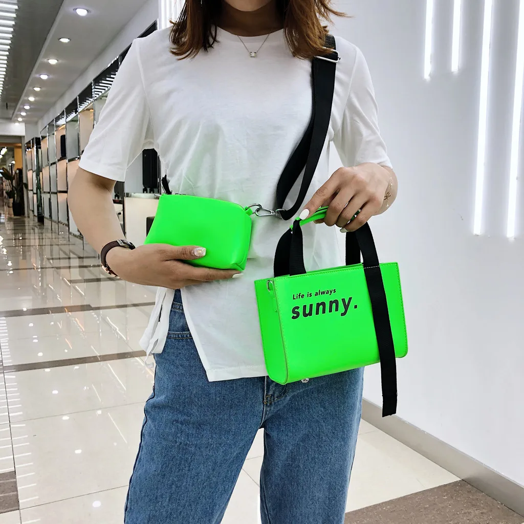 Женская Мода флуоресценция Цветная сумка композитная сумка повседневная сумка на плечо