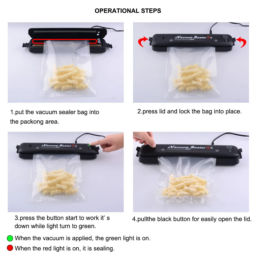 Вакуумная упаковочная машина One touch для пищевых продуктов, простая в использовании, откройте автоматическую упаковку для пищевых продуктов и Положите пакет в вакуумную камеру, когда красный светильник tums green снова будет запечатан и обеспечит вашу безопасность. Машина для сохранения продуктов одним касанием, вы можете запечатать только или вакуумно запечатать пакеты.