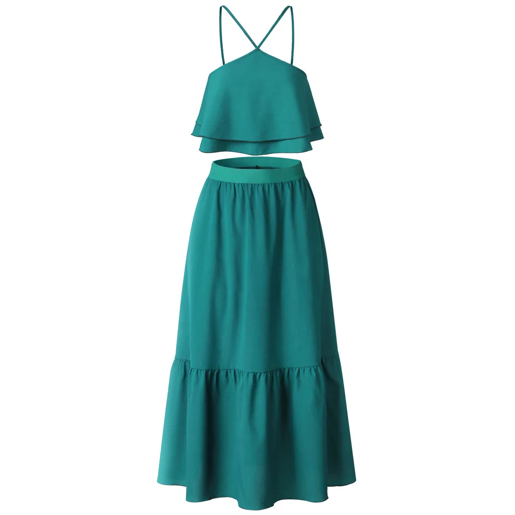Женский летний Бохо топик без спинки Топы рубашка Длинная юбка 2 шт Комплект