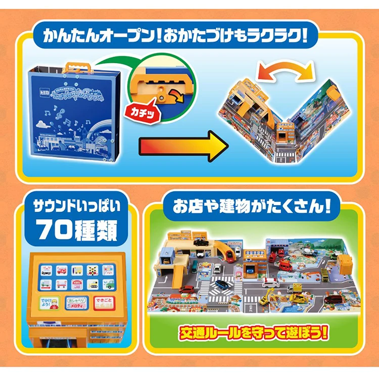 Когда вы открываете сумку, появится большой город. Нажмите на 13 переключателей, чтобы издать различные городские звуки, такие как полицейские машины и светофоры, и используйте томику, чтобы играть на дорожных зданиях на карте.