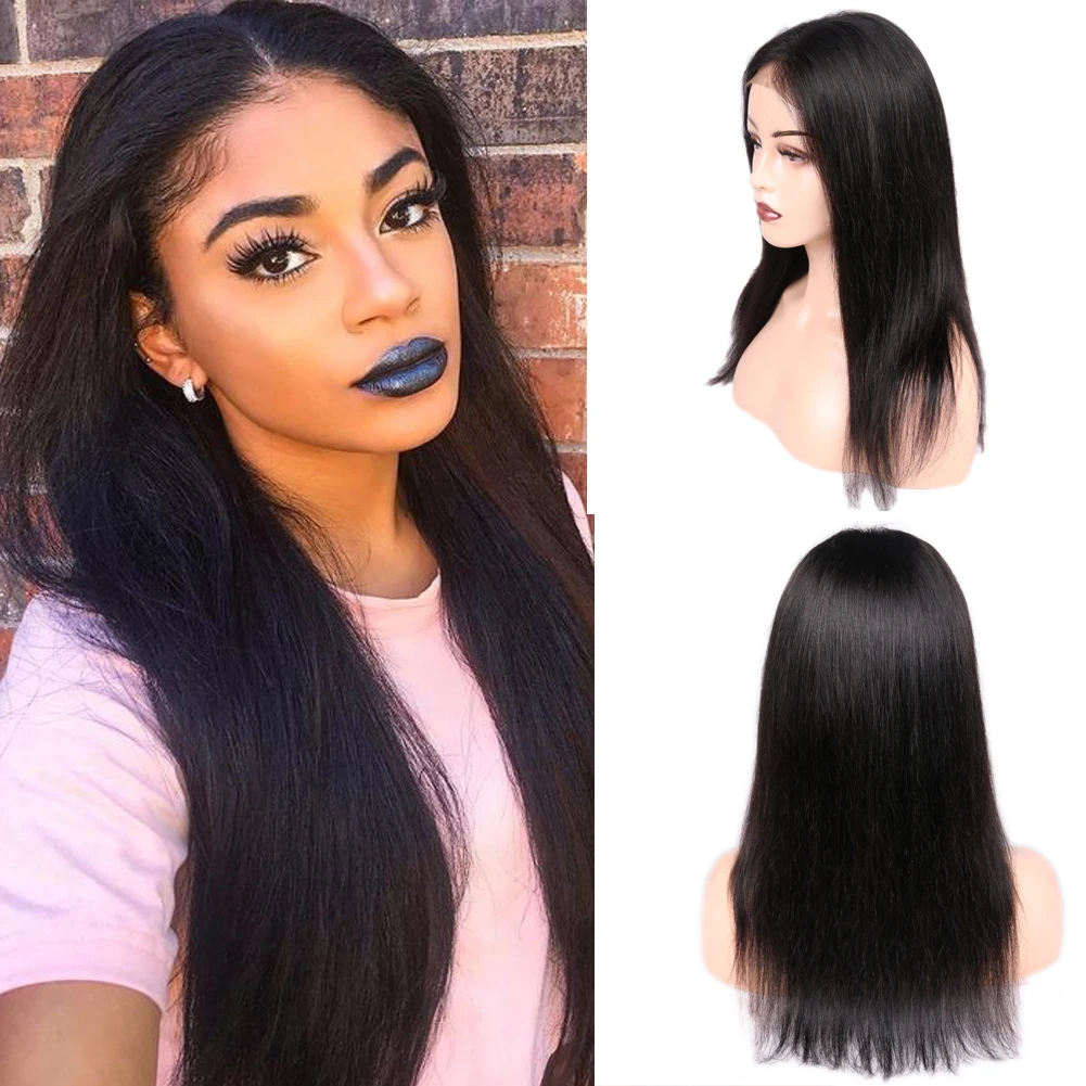 Wignee 4x4 кружевные прямые волосы, человеческие парики для черных женщин, предварительно выщипанные натуральные волосы, бразильские волосы Remy, парик из натуральных волос
