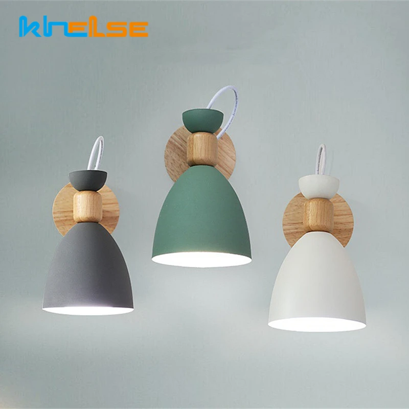 Современный светодиодный настенный светильник из дерева скандинавский E27 85-265V прикроватный настенный светильник для спальни...
