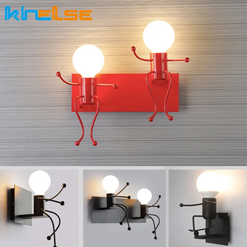 Простой Модный креативный настенный светильник с рисунком маленького человека Железный Ретро светодиодный настенный светильник f...