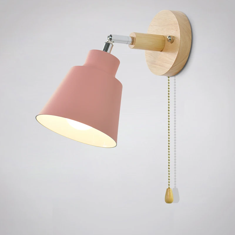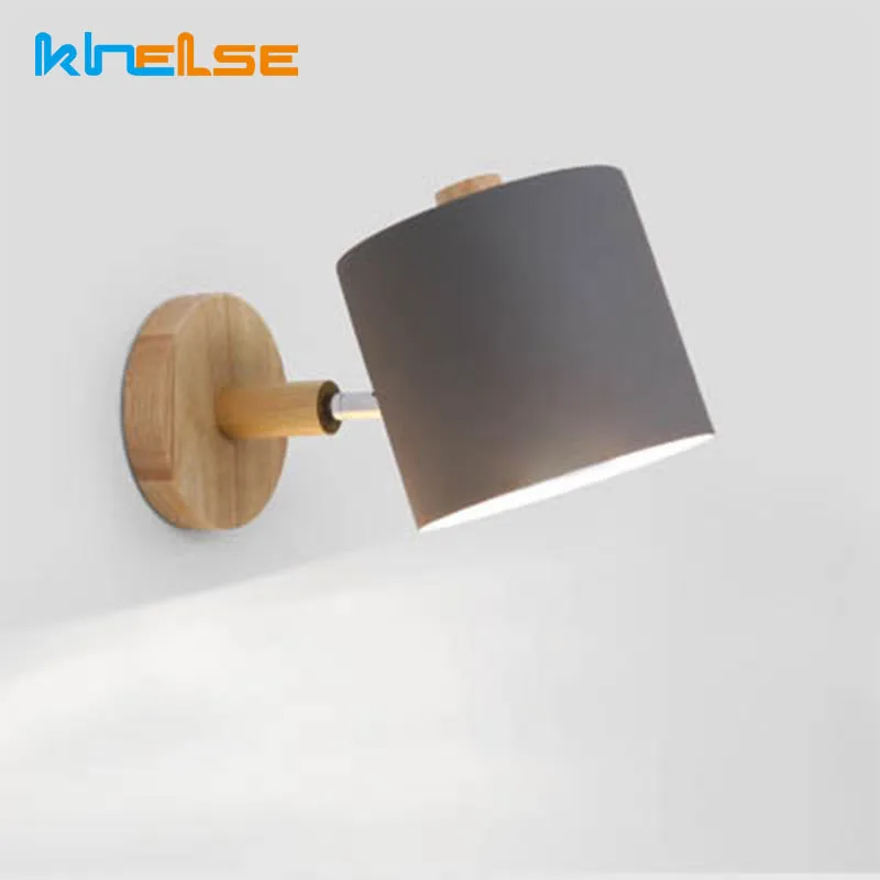 Скандинавские деревянные светодиодные Настенные светильники вращающийся E27 прикроватная Спальня 4 цвета бра с...