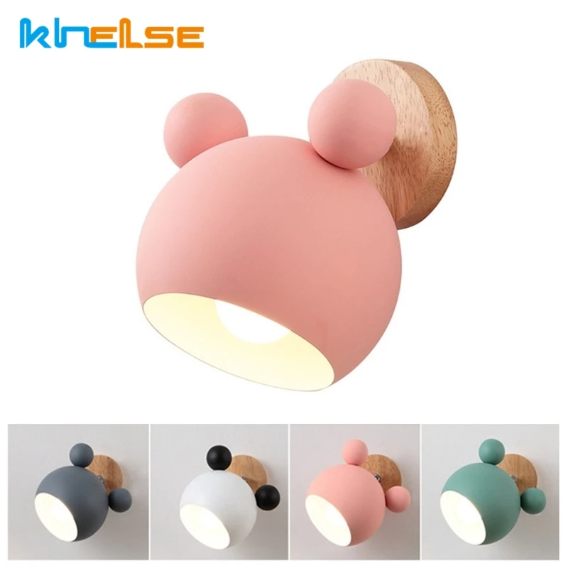 Скандинавский деревянный светодиодный настенный светильник E27 с мультипликационным рисунком, прикроватный светильник для спальни, современный...