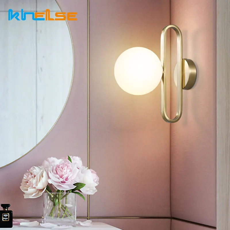 Современный светодиодный настенный светильник, молочный стеклянный шар, абажур, бра, зеркало для передней гостиной, Roo...