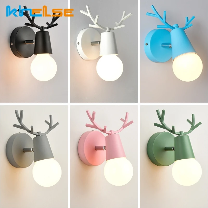 Скандинавский Мультфильм светодиодный настенный светильник креативная Регулируемая голова оленя рога прикроватная стена с...