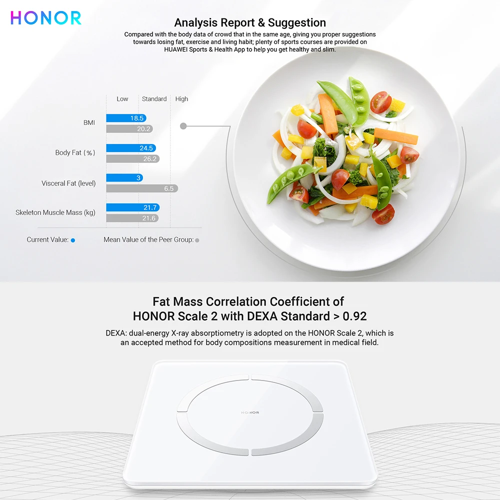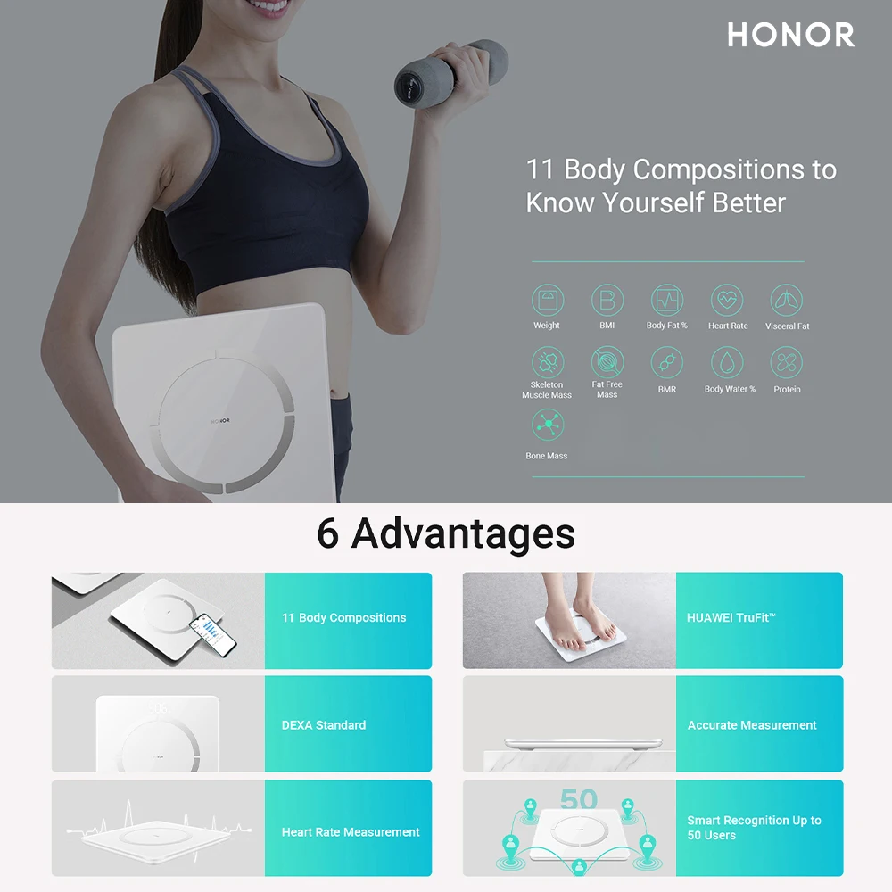 * HONOR Scale 2 может не распознавать пользователей, чьи данные тела очень похожи на другие.