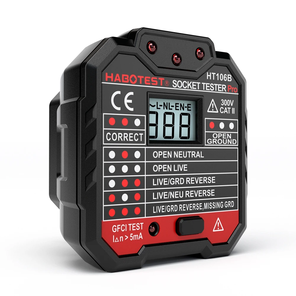 Нужно проверить проводку дома и проверить полярность подключения розетки? Нужно проверить утечку? Попробуйте наш HABOTEST тестер гнезда. Это профессиональный тестер гнезд, который быстро определяет, является ли соединение провода гнезда правильным или нет. С функцией тестирования RCD, это более практично и безопасно.