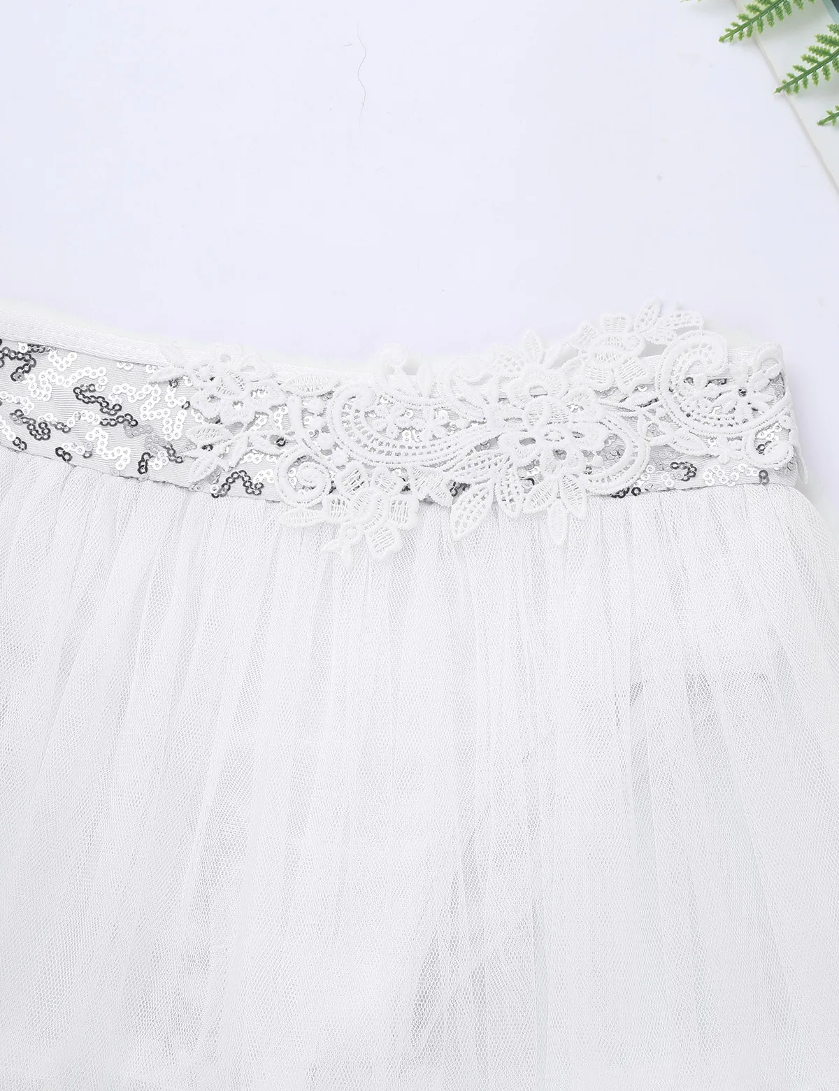 Сочетающаяся с высокой талией Мягкая юбка из фатина со встроенными трусиками, пояс украшен пайетками и вышитой цветочной аппликацией. Красивая Одежда для танцев для вашей девочки.