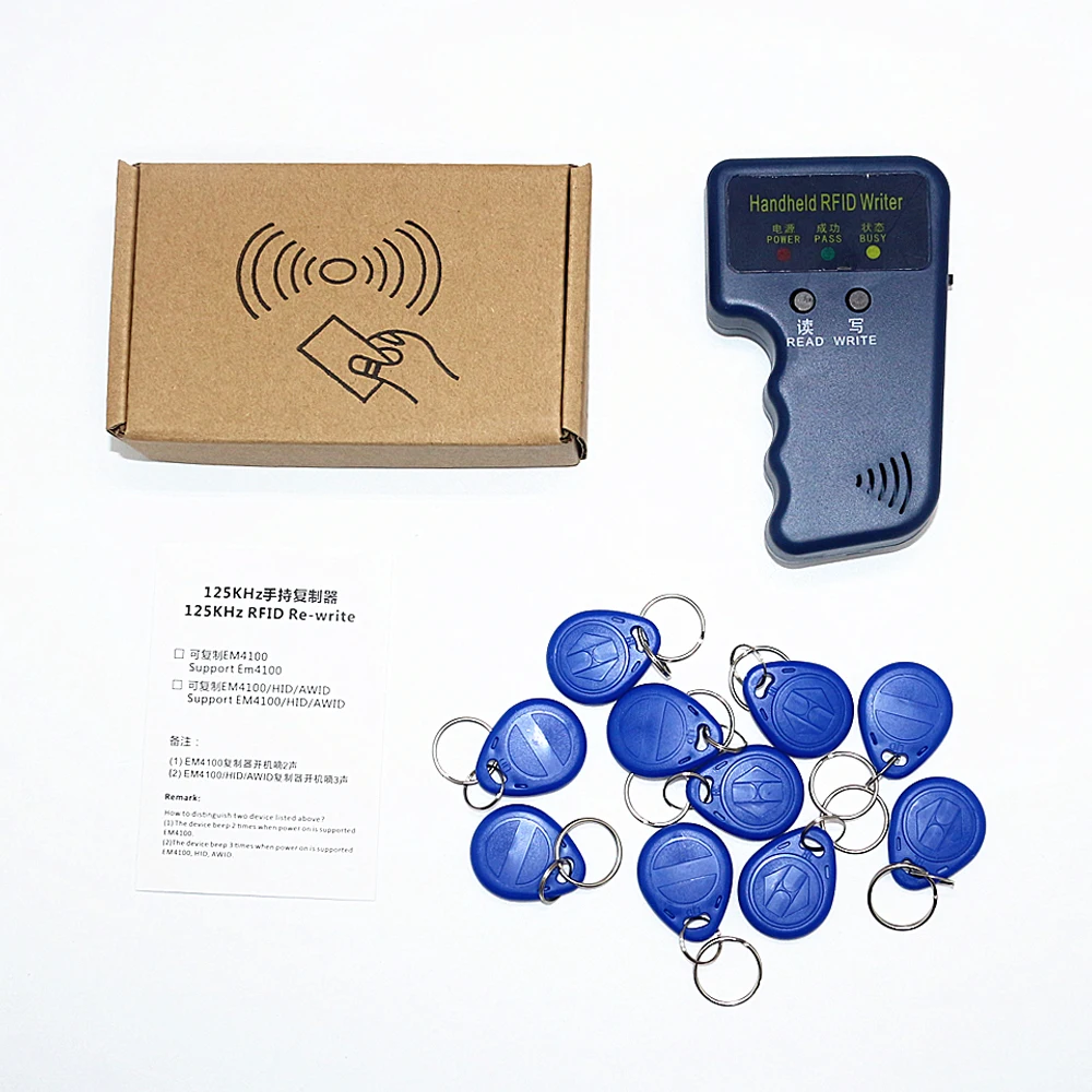 Этот товар является портативным устройством записи ID-Карт RFID 125 кГц, которое может легко копировать и записывать Номер ID-карты.