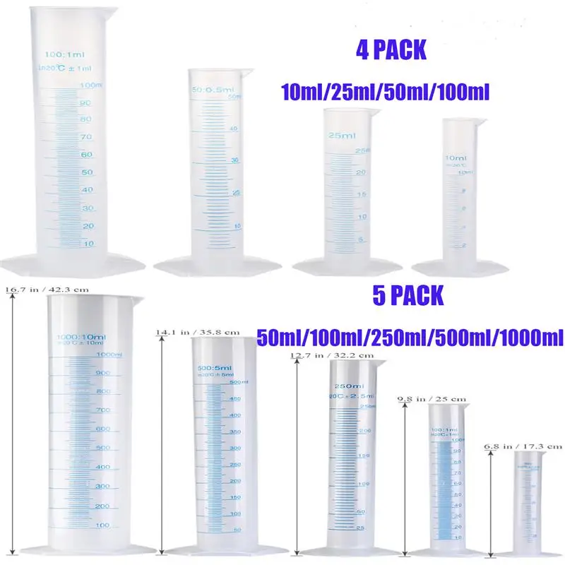 4 * PIXNOR прозрачный мерный пластиковый градуированный цилиндр 10 мл/25 мл/50 мл/100 мл