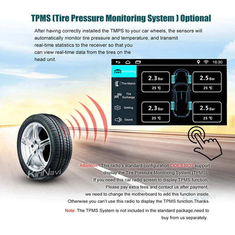 После установки TMPS на колеса вашего автомобиля датчики автоматически контролируют давление и температуру в шинах, И передача данных в реальном времени получателю, чтобы вы могли просматривать данные в реальном времени от шин на головном устройстве