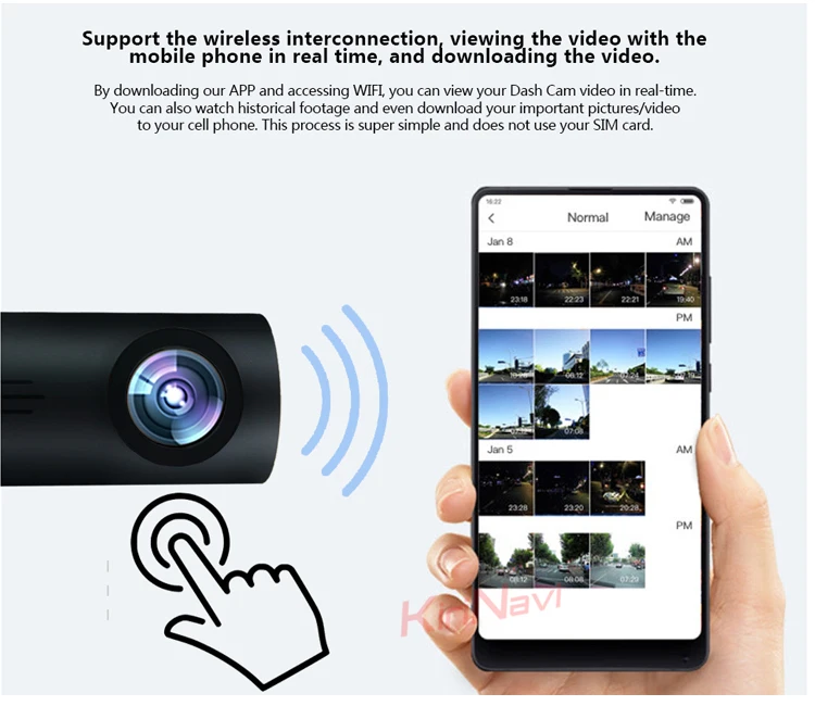 Загрузив наши приложения и получая доступ к Wi-Fi, вы можете просматривать видео в Dash Cam в режиме чтения. Вы можете смотреть записи истории и даже загружать важные фотографии/видео на свой мобильный телефон. Этот процесс очень прост и не использует вашу sim-карту.