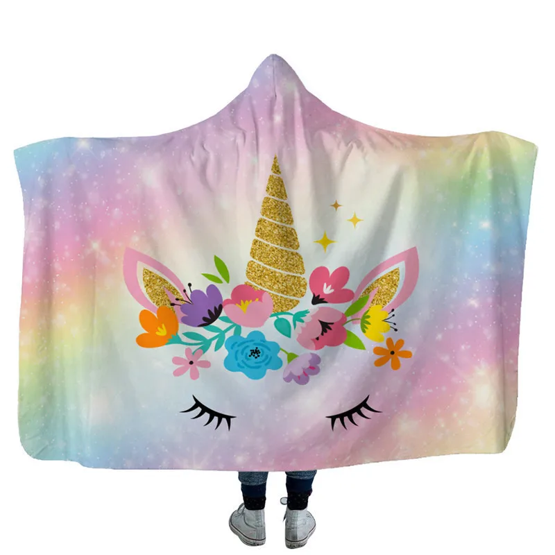 Одеяло с капюшоном и рисунком единорога для взрослых, для детей, для просмотра ТВ, для чтения, зимнее теплое Флисовое одеяло с капюшоном, Рождественский подарок