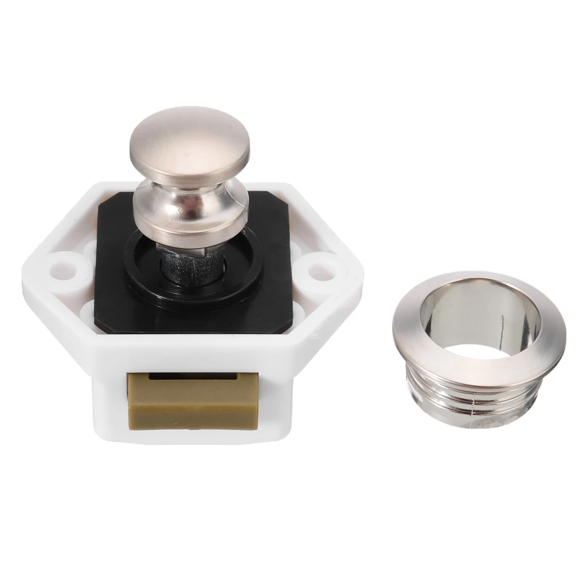 Когда кнопка нажимается, кнопка выскакивает, образуя ручку, в то же время, как отпуская улов.