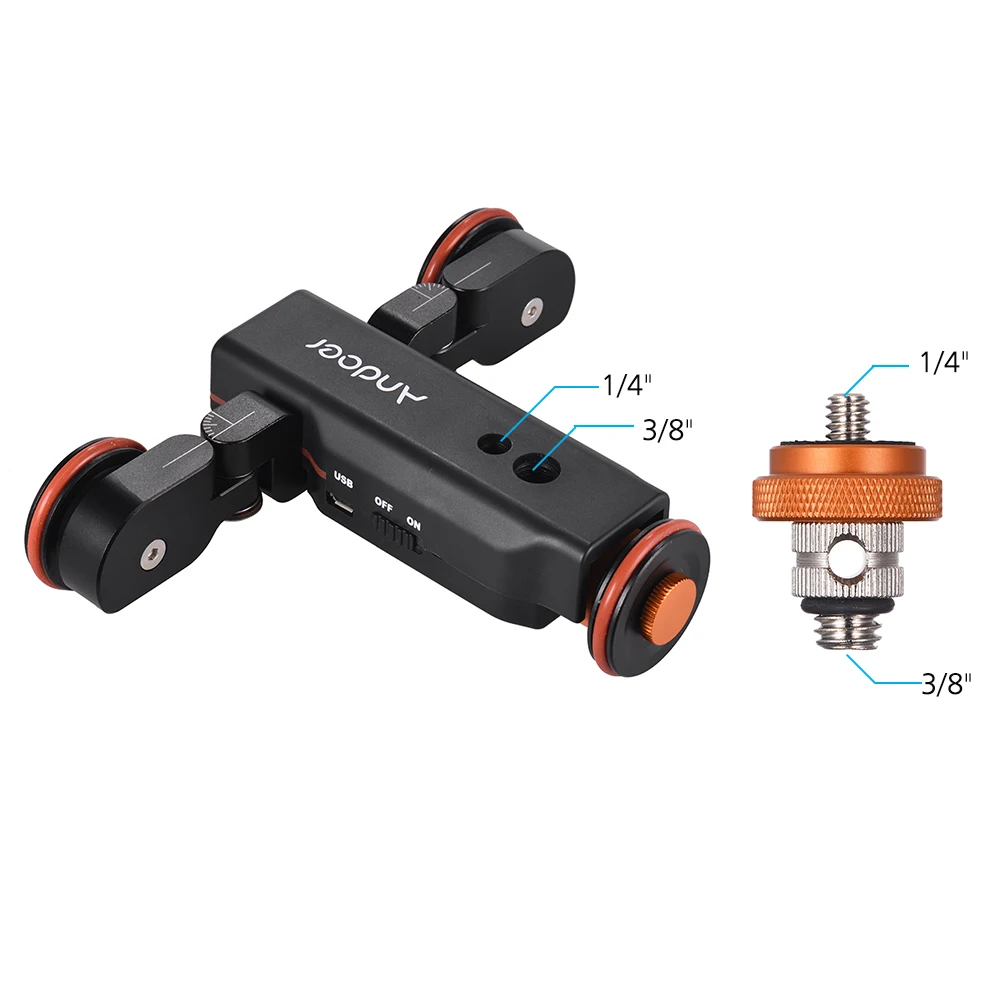 Модернизированный механизированная камера Долли со шкалой индикации, 3 скоростями (2,4 см/2,6 см/2,8 см/с); Поддержка двигаться в противоположном направлении; Колеса угол 180 ° регулируемый, вы можете достичь творческого кругового маршрута/прямого движения. Идеальный Авто Долли для промежутка времени/Макро/низкий угол съемки видео.