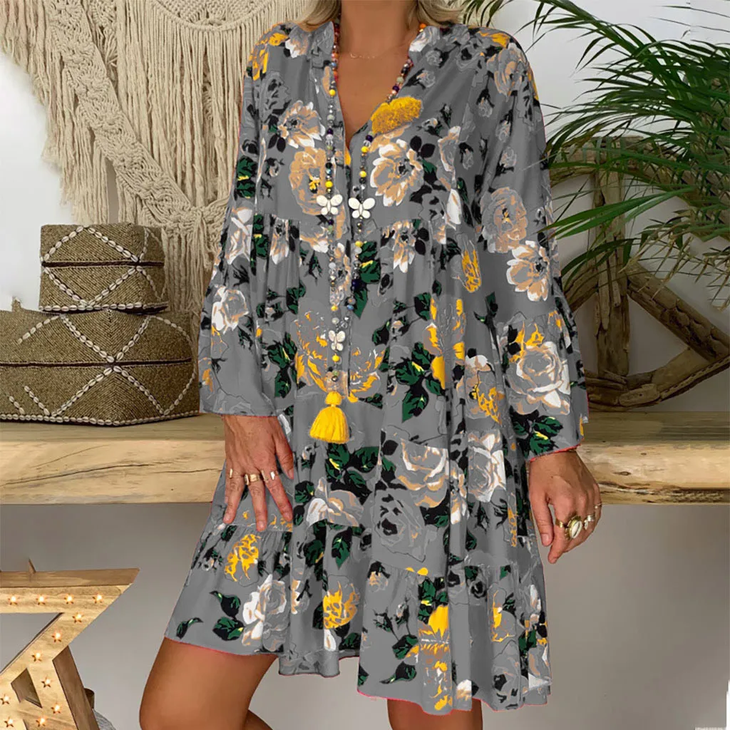 Женское свободное мини-платье с рукавом три четверти, летнее платье